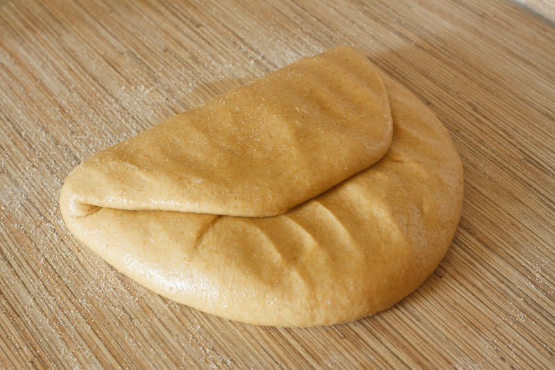 Общее время ферментации 2,5-3,5 часа при температуре 22-24. После замеса, подкатайте тесто в шар и швом вниз уложите в смазанную маслом емкость. Если вы месили руками, то можно сделать два складывания тесту через первые 40 минут, потом еще раз еще через 40, чтобы доразвить клейковину. Вот как это делается: