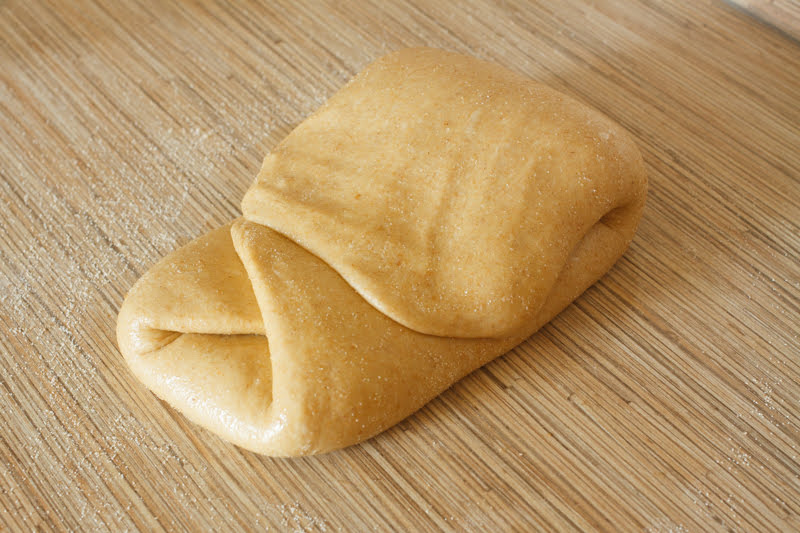 После механического замеса достаточно одного складывания через час после замеса. В этой процедуре старайтесь выдавить скопившийся воздух в тесте, чтобы мякиш после выпекания был максимально однородным по пористости.