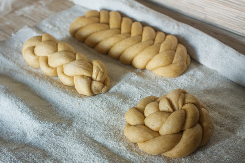 Плетение халы из двух жгутов, первый метод (круглая хала):