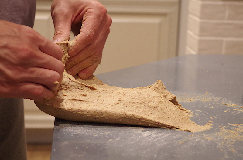Мы замешивали поздно вечером и не решились шуметь тестомесом, но, если у вас под рукой есть верный друг Ankarsrum, очень советую воспользоваться его помощью.