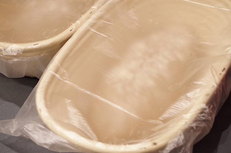 Сформуйте тугие заготовки и уложите в корзинки швом вверх, присыпьте при этом и дно корзинки, и заготовку, а еще лучше застелите ее льняной тканью или шапочкой - из-за долгой расстойки тесто может прилипнуть.