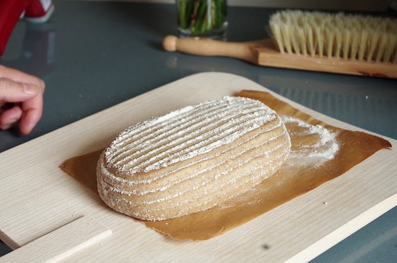 Температура у нас на кухне была около 20 град. и расстойка длилась 12 часов (но можно было сократить и до 10-11, лучше б раскрылись надрезы), если у вас теплее, расстойка пройдет быстрее, всегда учитывайте влияние температуры на скорость брожения теста. В то же время из-за того, что количество стартера совсем небольшое, расстойка в любом случае будет долгой. Вы можете ее ускорить, если возьмете, например, больше стартера, допустим, 10% сократит время расстойки примерно вдвое! Тоже, кстати, удобно, можно весь стартер из банки использовать, не придется выбрасывать остатки! Также вы можете ее продлить за счет холодильника. Наверное, первым, кто испек хлеб по этой технологии, был Антон @pekusam, который значительно увеличил время расстойки за счет комбинирования холода и тепла. И хлеб у него получился просто супер!))