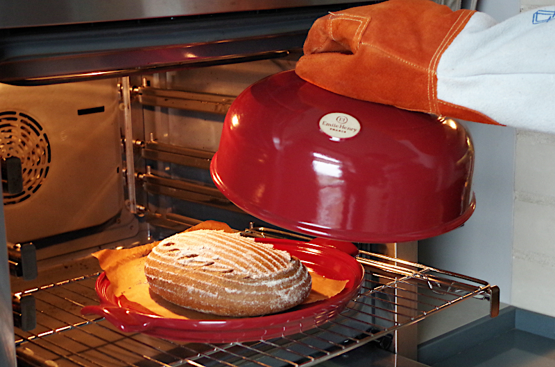 Через 12 часов наш хлеб сильно увеличился в объеме, прямо в несколько раз, и, пока грели духовку с колпаком (керамический набор Emile Henry), мы спрятали заготовки в холодильник, чтоб затормозить брожение.