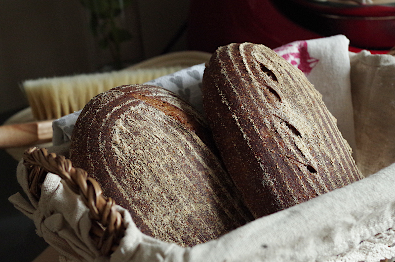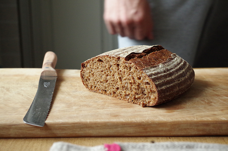 Друзья, привет! Очень много собралось интересных тем, на которые мне хотелось бы поговорить в блоге, но эта отодвинула все! Еще в начале июня, когда мы с Артуром проводили марафон по выведению закваски в инстаграм, показывали хлеб по очень простой, но эффектной технологии, очень похожей на хлеб без замеса...только с замесом! Суть ее была такая: взять всего ОДИН процент закваски, замесить до гладкости, сразу разделить, сформовать и расстаивать 10-12 часов при комнатной температуре. В итоге мы испекли очень красивый хлеб, у которого шикарно раскрылся надрез и рисунок мякиша оказался очень необычный, и он впечатлил не только нас, но и народ в инстаграм. Так вышло, что показать в блоге мы смогли его только спустя месяц. Впервые мы пекли его в Киеве, потом хотели повторить деревне в Орловской области, потом в Москве, а получилось его испечь в Казани в гостях у Наташи, с которой мы познакомились в сентябре на нашем мастер-классе))