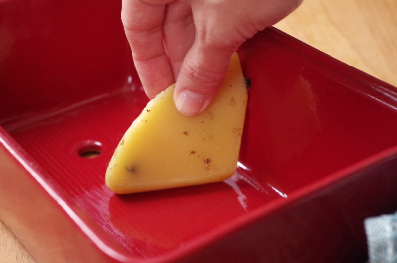 Здравствуйте, Елена! Спасибо огромное за рецепт, он прекрасен! Можно уточнить поподробней информацию по обработке формы воском? Это обычный пчелиный воск? А он при выпечке к тесту не прилипнет? Обрабатывать таким образом форму нужно единоразово или перед каждой выпечкой в ней?