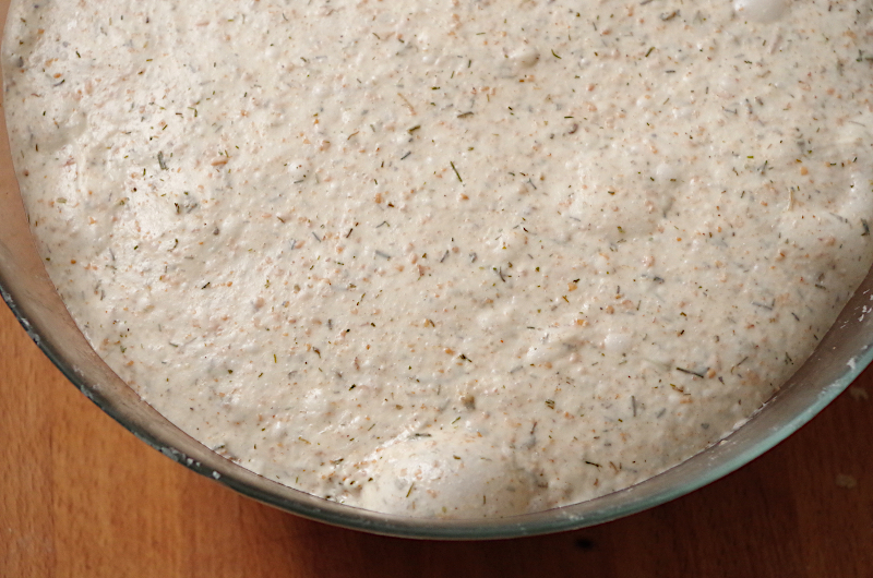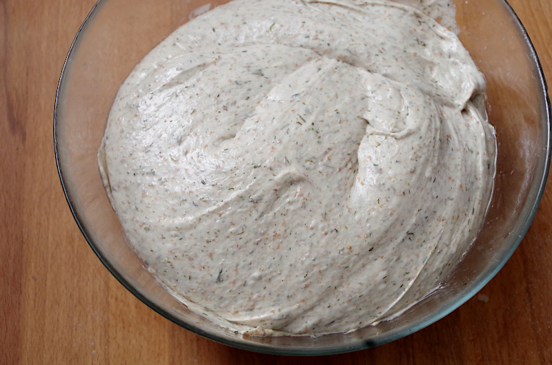 Смешайте закваску, муку, воду, укроп и картошку и оставьте на полчаса для ауолиза. Обычно все тесто я замешиваю в Ankarsrum с помощью крюка, но сегодня достала ролик и замесила с его помощью. Удивительно, но процесс был еще быстрее! Если вы еще не пробовали с ним работать - попробуйте, только фиксируйте поближе к стенке чаши.