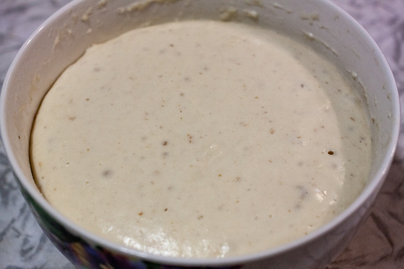 В 9-10 часов утра (но можно и раньше, главное чтобы к 8-9 вечера у вас закваска не перебродила) ставим опару. Можете поставить и позже, но тогда увеличить количество стартера. Наша цель - получить к вечеру среднюю степень зрелости, когда она вырастет, но еще останется шапочка и пузырьки воздуха будут слегка проступать на поверхности. Следом смешиваем семена для мочки и заливаем их водой.