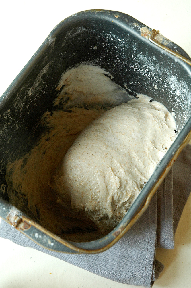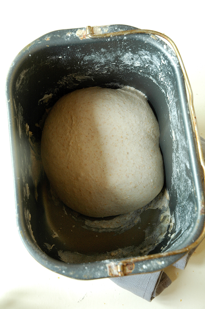 Я заметила, как замечательно соль влияет на тесто, во время замеса пшеничного хлеба. Речь идет о тесте влажнстью около 65%, не очень крутом и не очень влажном, которое в хлебопечке должно крутиться колобком, не размазываясь и не оставляя следов. Если в начале замеса не добавить соль, смотрите, как будет вести себя тесто (это в середине замеса).