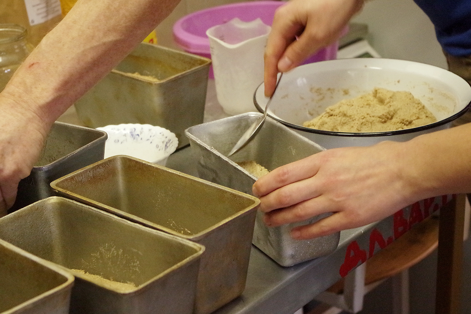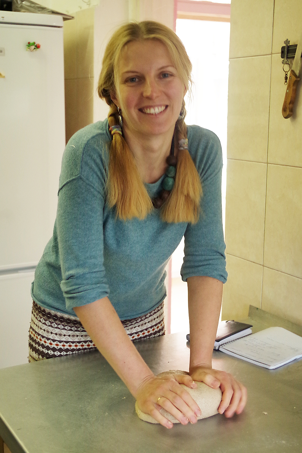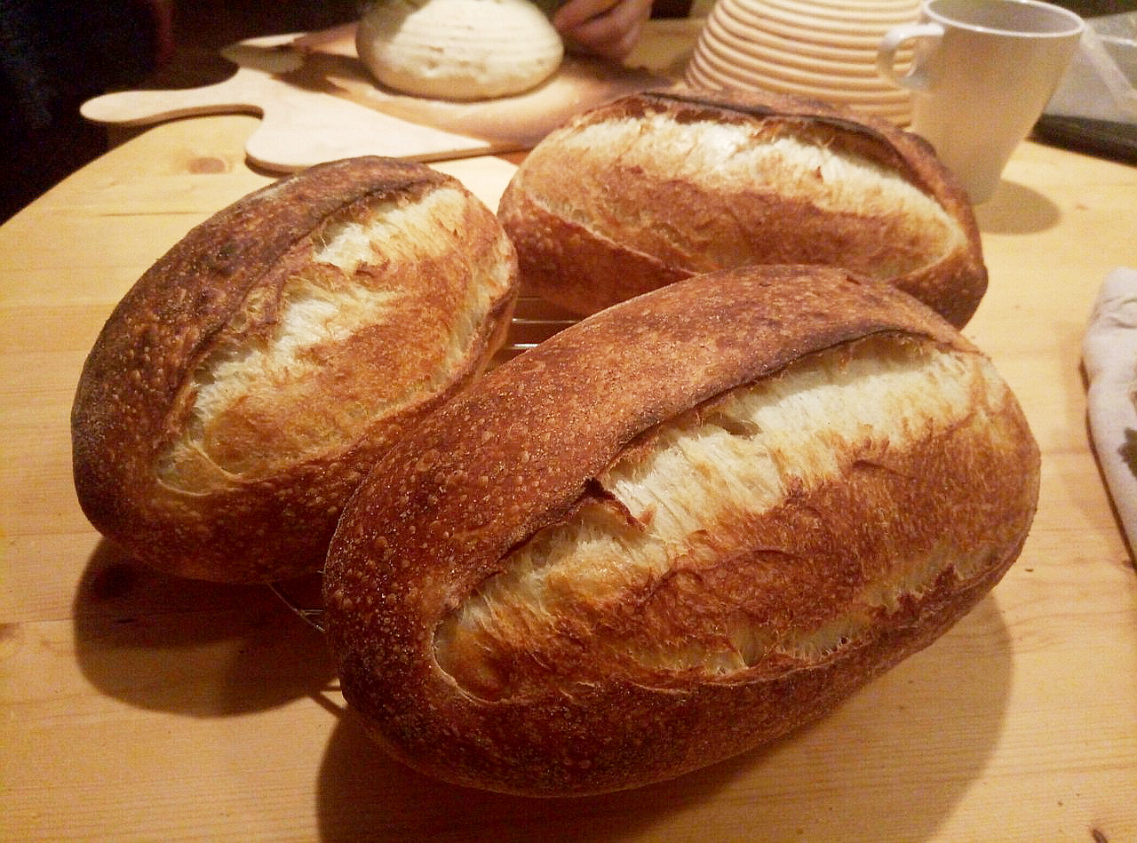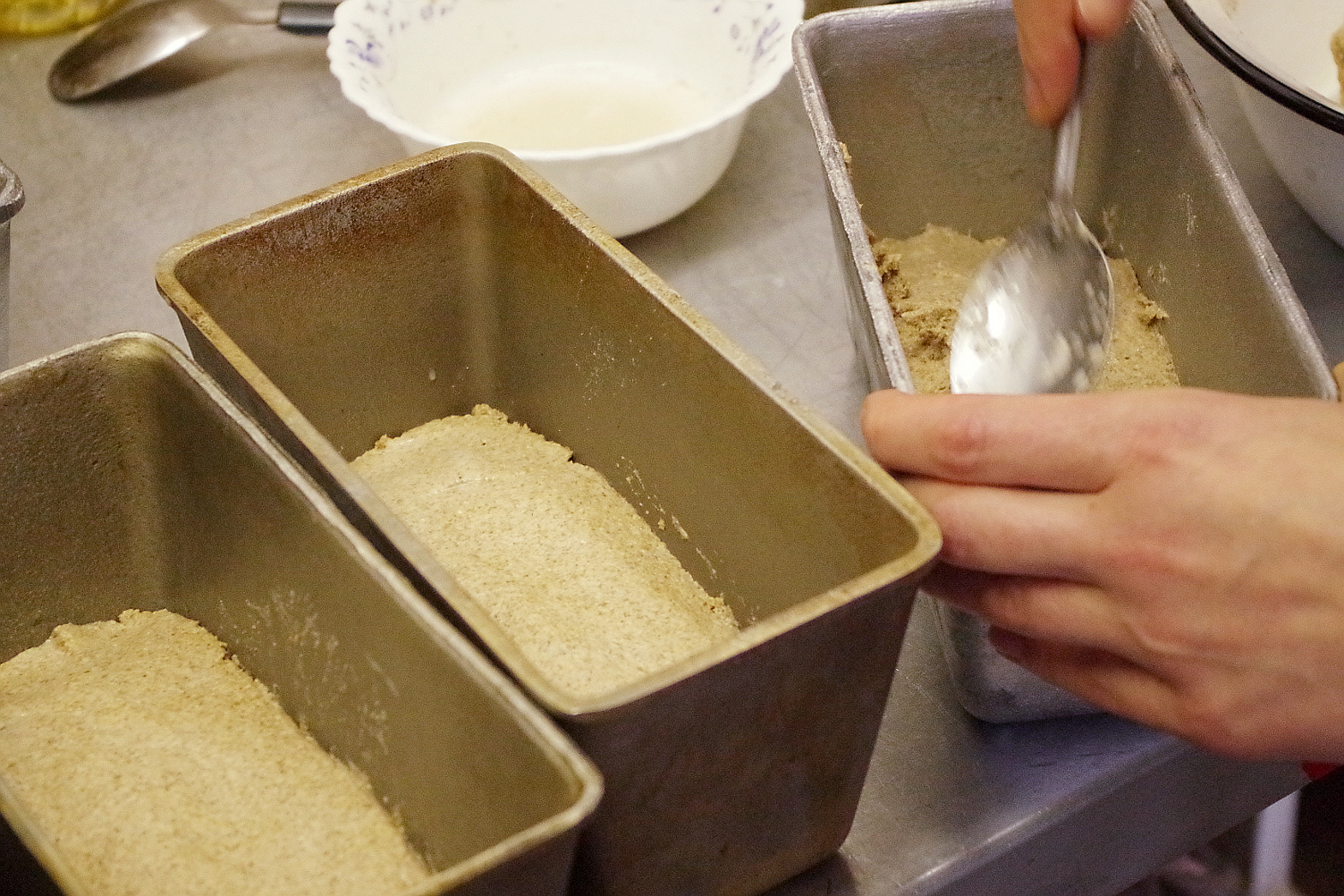 Приехав в Москву, у меня тут же начался следующий мастер-класс – в вальдорфской школе «Семейный лад», где нужно было помочь наладить выпечку хлеба на закваске для школьной столовой. Несмотря на то, что времени было в обрез и я только с поезда, мы успели отработать три вида хлеба! В начале одиннадцатого утра меня встретил на вокзале Борис Тышкевич, посадил в машину и повез в неизвестном направлении, как потом оказалось, мы ехали прямо в школу, где предстояло проводить мастер-класс. Примерно в полдень мы были на месте, поставила опару для хлеба, а уже через два с половиной часа мы начали замешивать тесто. Задача у нас была непростая: отработать выпечку хлеба для школьной столовой в пароконвектомате при полной его загрузке. Мы испекли несколько буханок Машиного хлеба, пшеничного цельнозернового и пару буханок специально деликартного хлеба, который бы нравился детям своей мягкостью и вкусом.