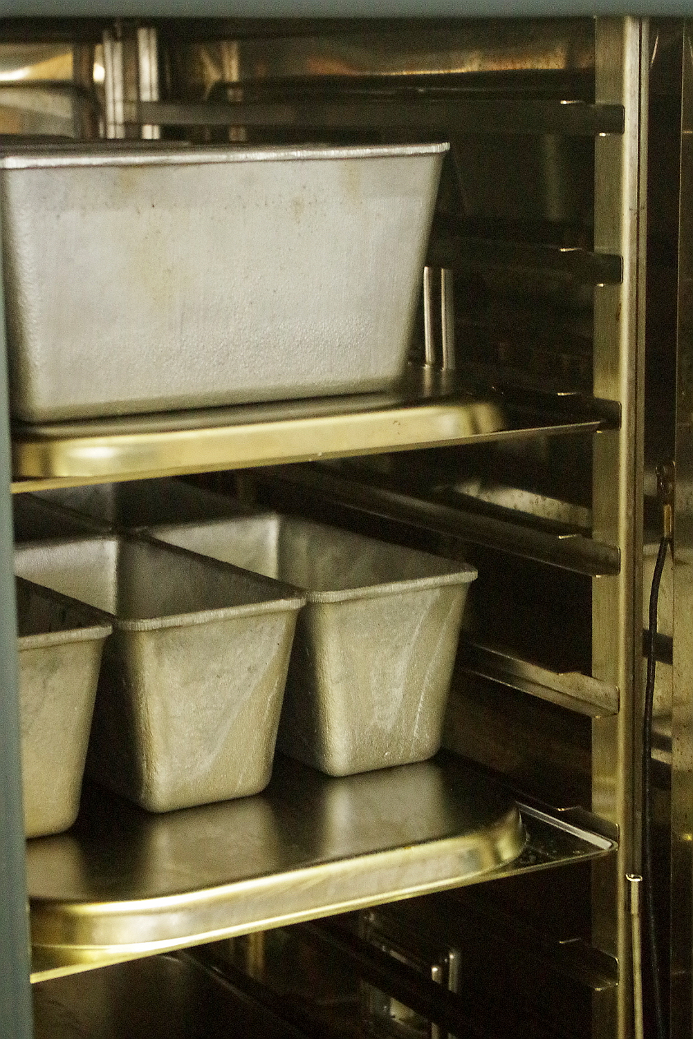 Почти весь хлеб мы пекли в формах и только один решили испечь подовым, но эта идея оказалась не самой удачной: пароконвектомат дул во время выпечки с такой силой, что 100% пара в начале выпечки выглядели малоубедительно. Корка получилась слишком румяной, хлеб треснул понизу, надрезы не раскрылись, с трудом пропекся. Мы лишнйи раз убедились, что конвектоматы не предназначены для выпечки подового хлеба.
