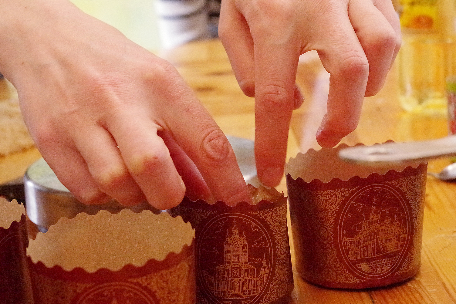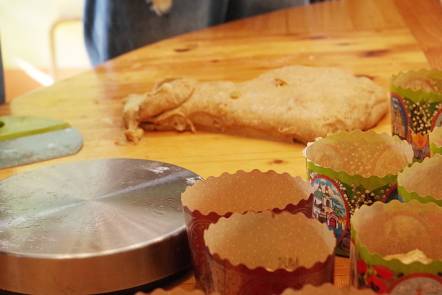 Начался марафон с путешествия во Владимир к Наташе Нестеровой, у которой мы планировали напечь французских булок и куличей. Признаться, куличи я не хотела печь, боялась, что программа будет перегруженной, ничего не успеем, и публике будет сложно воспринять столько информации. Но поддалась на уговоры (тем более, что Наташе вот-вот рожать, и одно то, что она отважилась на мастер-класс – заслуживает уважения и всяческих шагов навстречу) и куличи таки вошли в программу владимирского мастер-класса и, как оказалось, очень не зря. Обычно я строю свои мастер-классы таким образом, что мы прорабатываем на практике все этапы приготовления хлеба от замеса до выпечки, но при этом я приношу с собой уже замешанное накануне тесто, которое, пока мы знакомимся и месим, успевает подойти и мы из него формуем хлеб, который в последствие печем. Аналогично я решила поступить и с куличами во Владимире, которые я неоднократно пекла дома. Но не учла простого: заквасочное сдобное тесто очень медленное, то есть, бродит очень долго и никак не вписывается в привычный режим ведения мастер-классов! Так получилось, что куличи мы допекали уже без участников ночью и даже утром, и на следующий день угощали готовыми. С одной стороны было досадно, что не все успели, но с другой – я поняла, что в подготовке к предстоящему в Москве куличному мастер-классу нужно кое-то поменять.