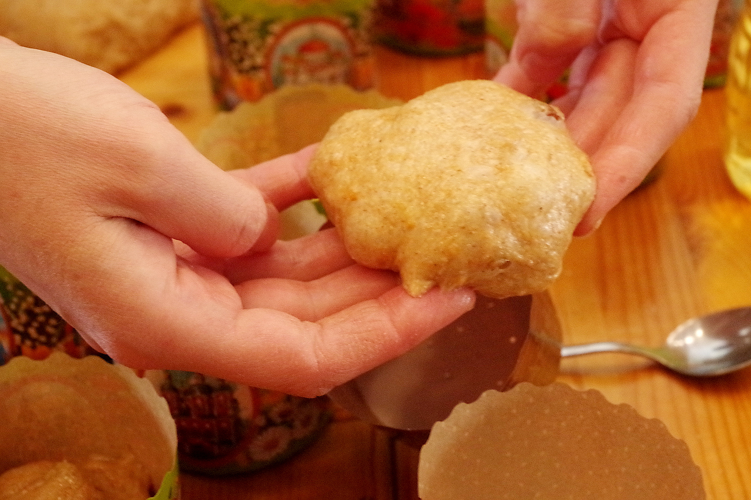 А уже после МК случилось то, чего, как мне казалось, никогда не произойдет: работники школьной столовой попытались испечь хлеб прям вместе с ротанговыми корзинками. Смотрите, ничего так еще вышло, хлеб как поднялся! :))
