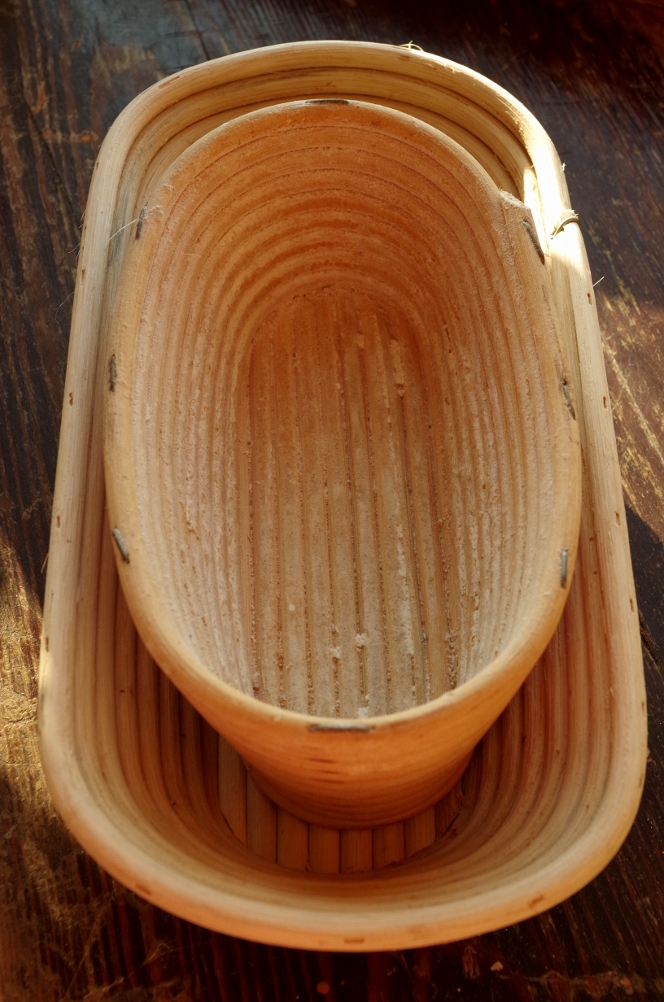 Корзинки вообще творят чудеса, кроме того, что на хлебе они оставляют красивые полоски, которые всем так нравятся, они позволяют печь пышный и красивый хлеб благодяря тому, что в них однодновременно растет и чуть-чуть подсыхает (но не настолько, чтоб образовалась сухая корочка, которая только помешала бы мешала во время выпечки). Это помогает сохранить форму хлеба в духовке.