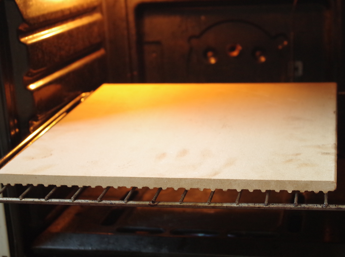 Если кратко, то пекарский камень — это не кирпич и не булыжник, это такая плитка, обычно керамическая или терракотовая, круглая или прямоугольная, толщиной 1-3 см., которую используют, как противень, на него перекладывают расстоявшуюся заготовку. Иными словами, пекарский камень имитирует то, что называется подом в профессиональный печах, отсюда и хлеб, который печется на поду, без формы, называется подовым. Размерами эта плитка примерно с противень духовки, может, чуть меньше, его кладут на решетку и разогревают вместе с духовкой. Чтобы хорошо раскалить камень и прогреть духовку, нужно около 40-50 минут. Камень равномерно нагревается и равномерно отдает тепло независимо от того, как греет духовка. Она может жарить в левом дальнем углу и еще гореть в ближнем правом, если в духовке стоит камень, это уже не имеет значения, он выступает как бы буфером, накапливая в себе тепло и потом отдавая его хлебу. В итоге тесто получает очень мощную порцию жара, быстро схватывается тонкой корочкой, растет вверх, и это видно прежде всего по форме самого хлеба и направлению пор внутри него. Вот для сравнения хлеб на камне и хлеб на неразогретом противне.