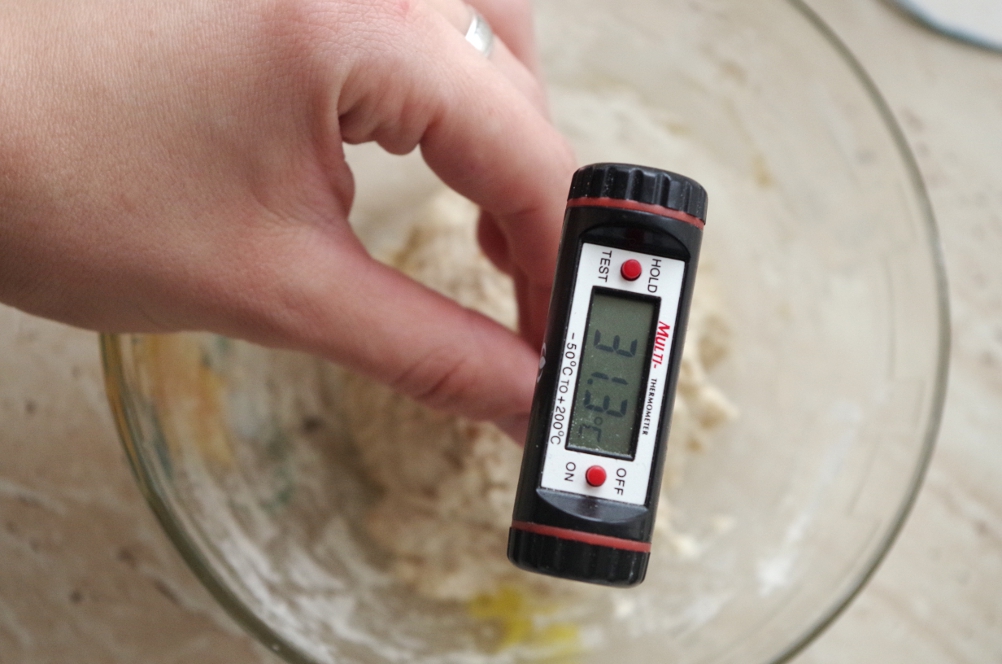 Я нечасто им пользуюсь, но иногда без него нельзя. К примеру, он мне очень помог во время расконсервации немецкой закваски Sekowa и выбраживании производственной опары, в приготовлении заварок для хлеба, еще я пользуюсь им просто чтобы узнать температуру брожения теста, ведь, какая температура в помещении, такой температуры и тесто, которое в этом помещении бродит. Как видно на фото, мой термометр выполнен в виде иглы , которую можно погружать в опару или сахарный сироп, работает он от малюсенькой батарейки-таблетки. За три года, что он у меня имеется, я ни разу не меняла эту батарейку, пока нет необходимости. Впрочем, я не так часто им пользуюсь, как, к примеру, кухонными весами.