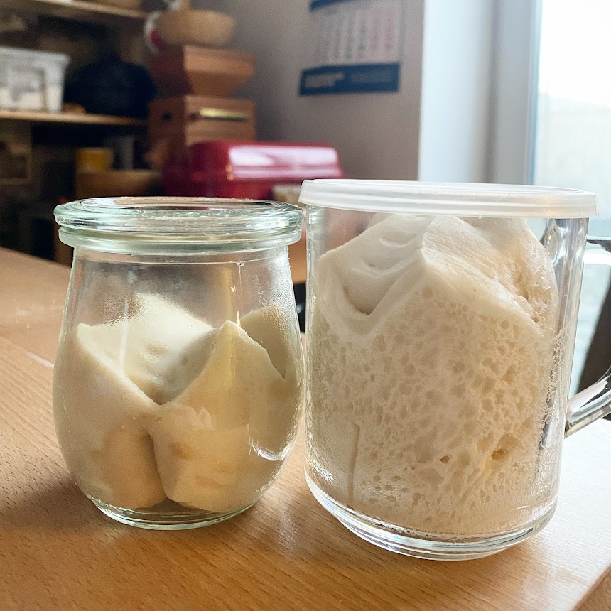 Густые закваски устроены очень интересно: в них все придумано так, чтоб они были довольно кислыми, то есть, имели высокую кислотность, но при этом высокая кислотность легко может пошатнуть внутренний баланс и закваски могут терять подъемную силу. Это происходит из-за того, что высокая кислотность повреждает стенки дрожжевой клетки и дрожжи перестают быть такими шустрыми, а закваска, в свои очередь, может слабо и медленно расти и меньше увеличиваться в объеме несмотря на поры внутри.