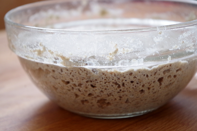 Расстоявшийся хлеб увеличится в объеме и на поверхности могут стать заметны дырочки от пузырьков воздуха, совсем немного.