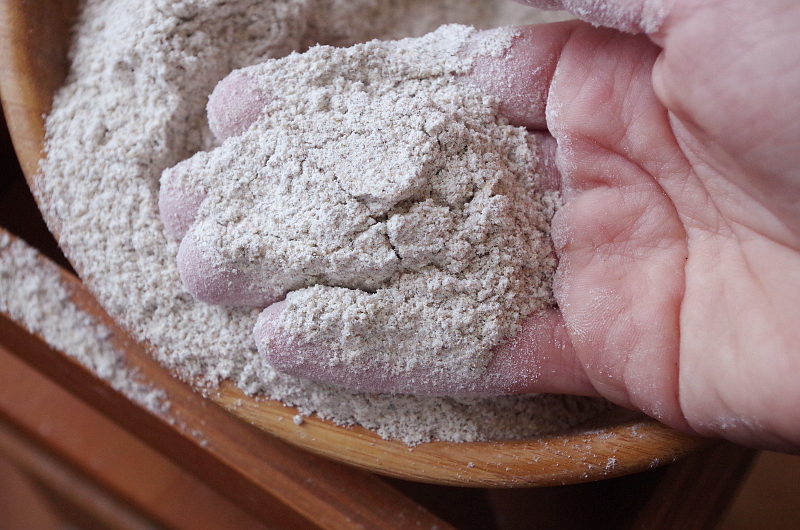 Смолола муки. Если у вас есть домашняя мельница, сделайте это обязательно, свежая ржаная мука в хлебе на закваске - это космос!