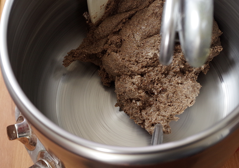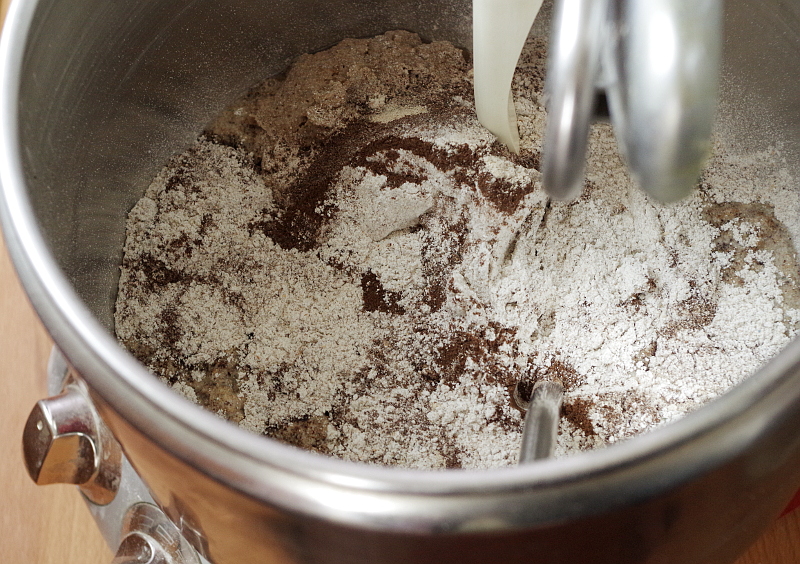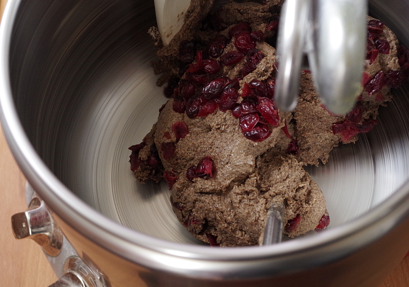 В чаше тестомеса (у меня красненький Ankarsrum Original) смешайте все ингредиенты кроме клюквы.