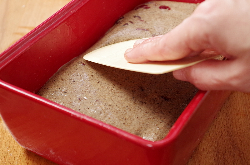 Переложите в подготовленную форму, выровняйте и загладьте мокрыми руками и пластиковым скребком, чтоб получилась ровная гладкая заготовка. Можете оставить так, а можете посыпать кунжутом и слегка придавить мокрыми руками, чтоб они лучше держались. В оригинале он, кстати, с кунжутом печется и кунжут дает свою нотку, я это упустила.