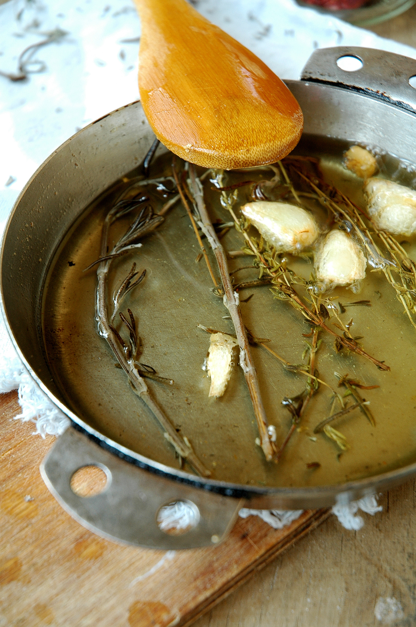 Свежий или сушеный розмарин, тимьян, базилик.