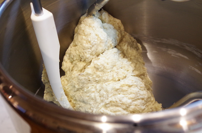 Вчера замесил тесто — получилось довольно тугое, пришлось добавить 30 г молока сверх рецепта. Использовал муку «Манитоба» — она, видимо, очень влагоемкая.