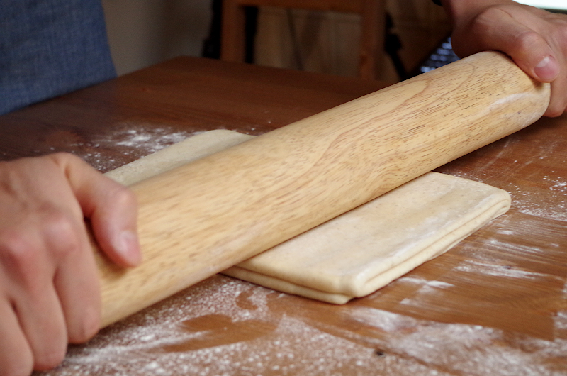 - Каждый раз перед раскаткой немного продавливайте тесто скалкой, что сделать тесто и масло в нем пластичнее.