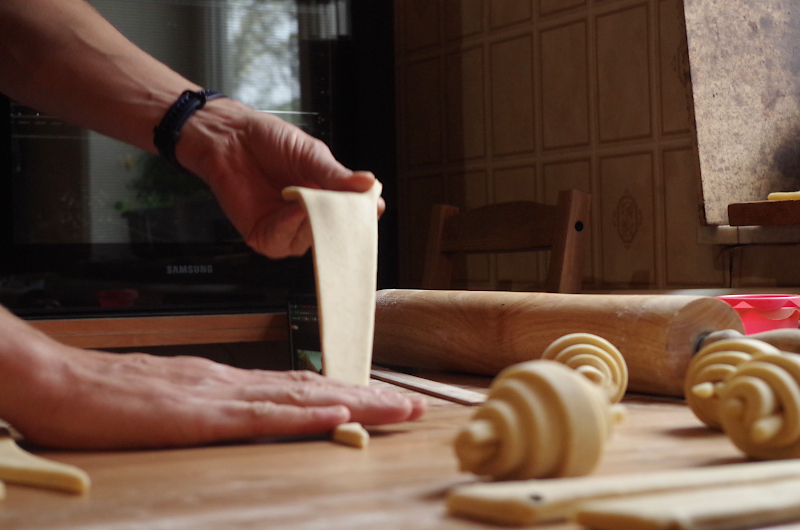 - Проверяйте подпыл - тесто не должно прилипать к столу, но и много муки не сыпьте.