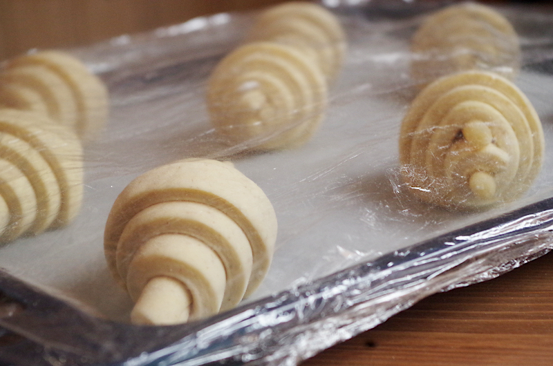 Застелите пергаментов противень, выложите круассаны, так, чтоб между ними было довольно много расстояния. У нас на одни противень помещается 8-9 круассанов. Накройте пленкой, чтоб поверхность не сохла, это очень важно! Расстойка 5-7 часов при 26-27°.