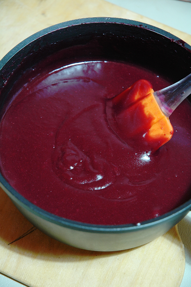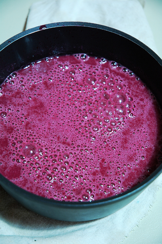 Переливаем виноградно-мучную массу к остальному соку, на маленьком огне доводим до кипения. Сок должен превратиться в густой-густой кисель.