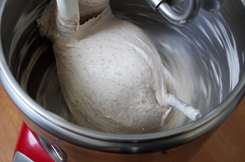- Если вы месите в миксере типа китчен эйд или кенвуд, то вам не стоит использовать всю воду сразу. Эти машинки не умеют месить влажное тесто, поэтому советую сначала замесить средне-мягкое (400-450 воды возьмите в тетсо вместо 600-650) до гладкости, после чего постепенно ввести остальную воду.