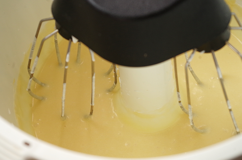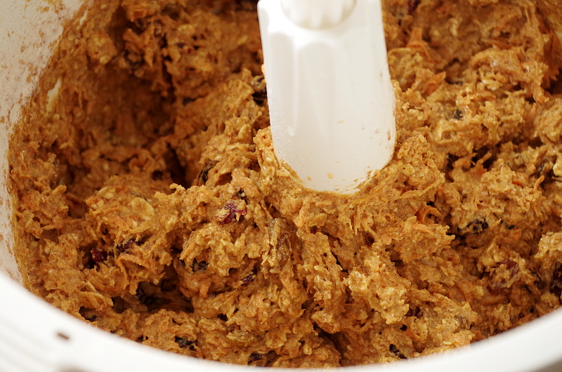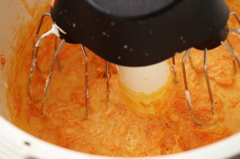 Добавьте натертую на мелкой терке морковку, еще раз взбейте.
