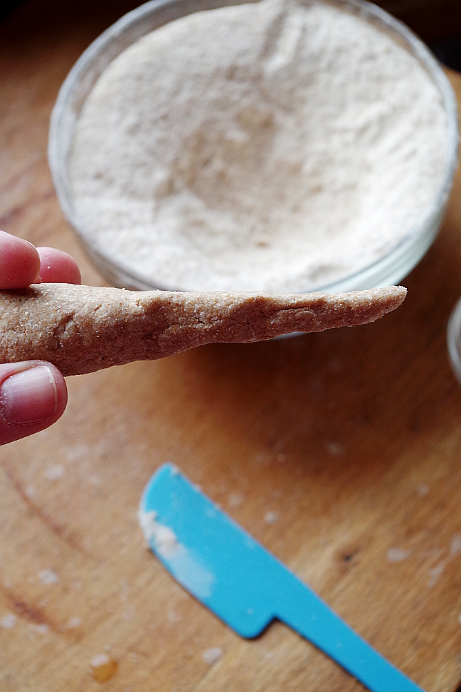 Возьмите комочек в руки и хорошо разомните.Тесто должно получиться действительно густым и совсем нелипким, если из него скатать морковку, ее острый хвостик не должен висеть.