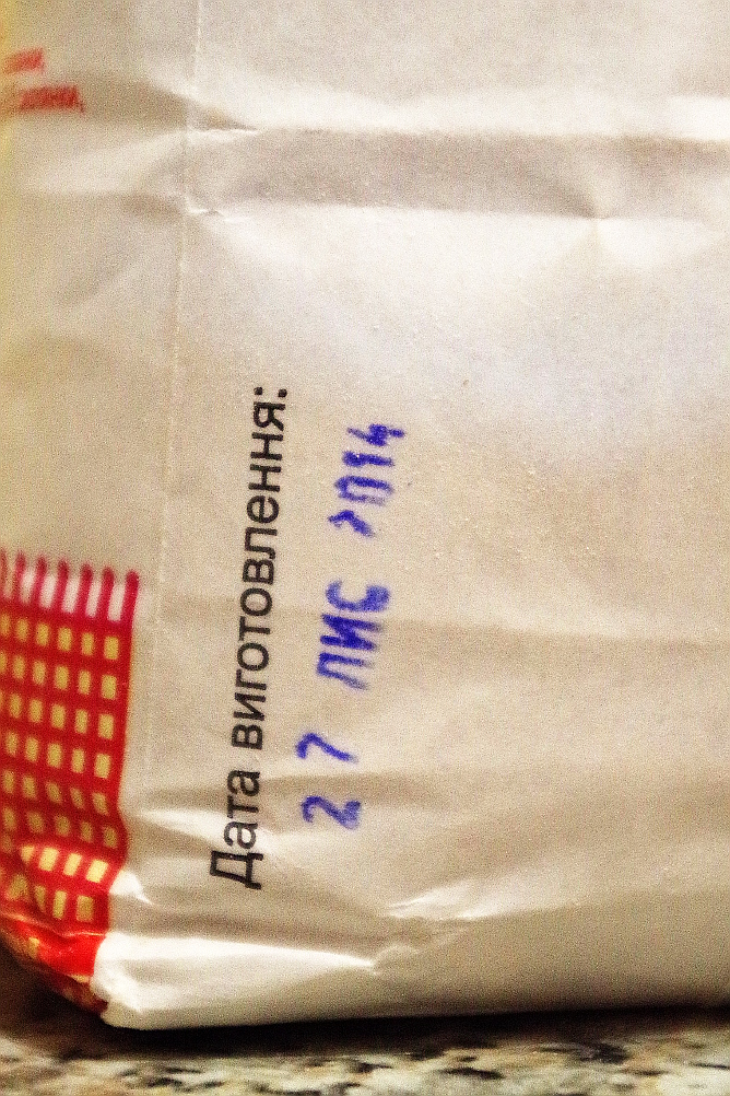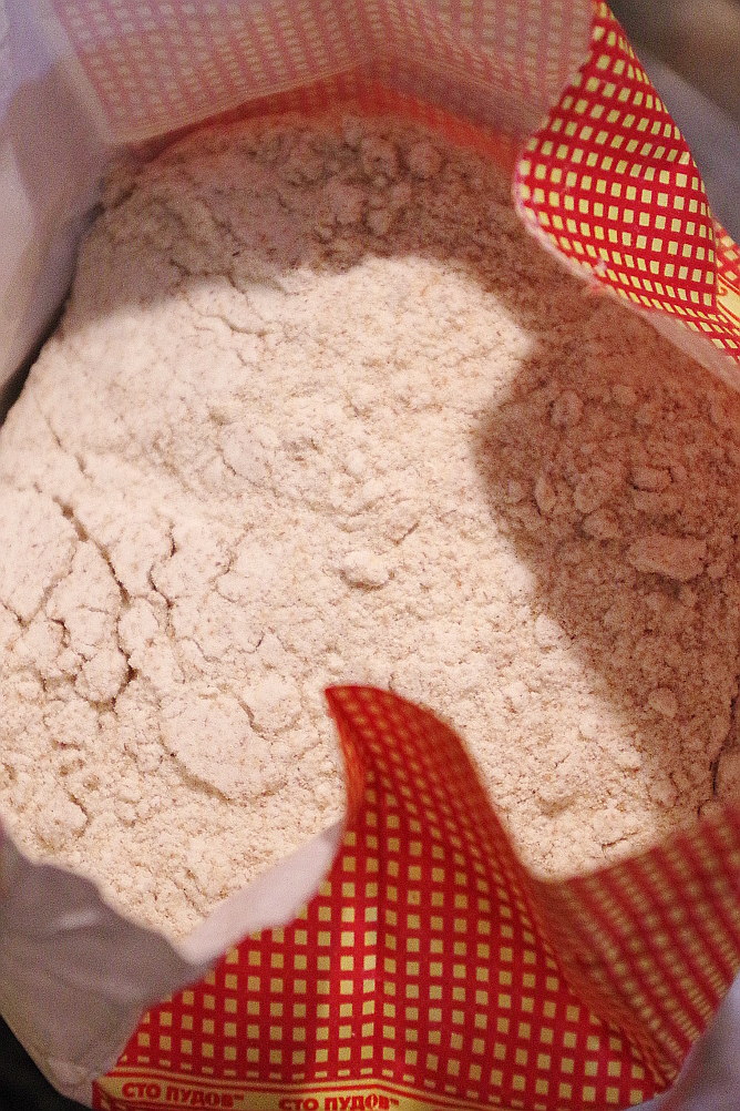 Но я на этом не успокоилась, пошла и купила в магазине пачку цельнозерновой муки, чтобы проверить, сколько воды возьмет магазинная. Дата ее призводства 27 ноября 2014 г., в общем-то, не старарая еще, но уже и не свежесмолотая.