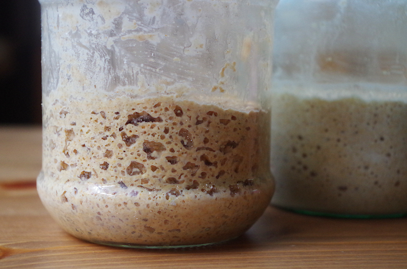 На первом этапе закваска из муки и воды развивается, можно сказать, стандартно: в ней спонтанным образом начинается брожение. Поэтому наши закваски называют заквасками спонтанного брожения, которое возникает само, спонтанно!))