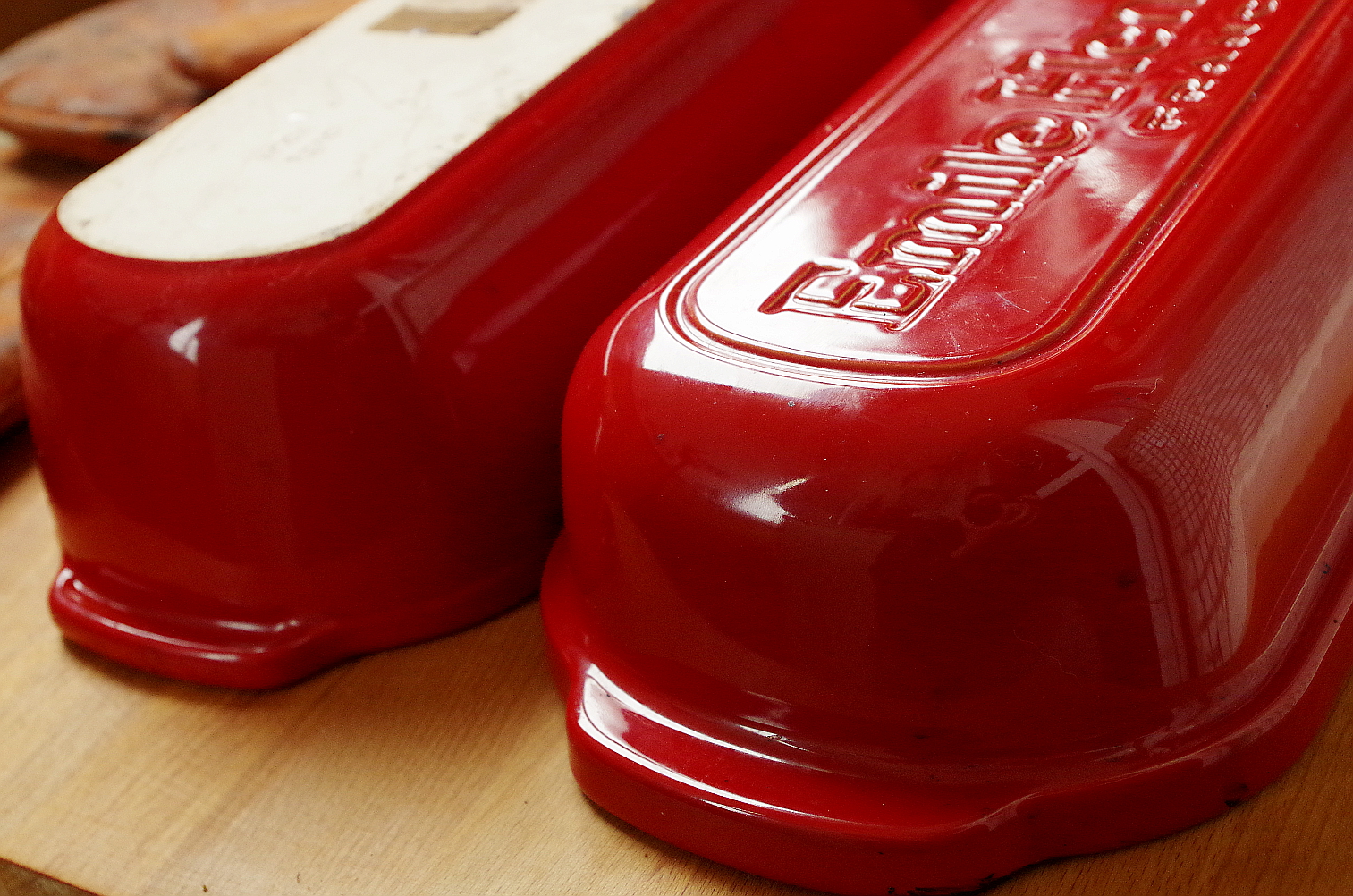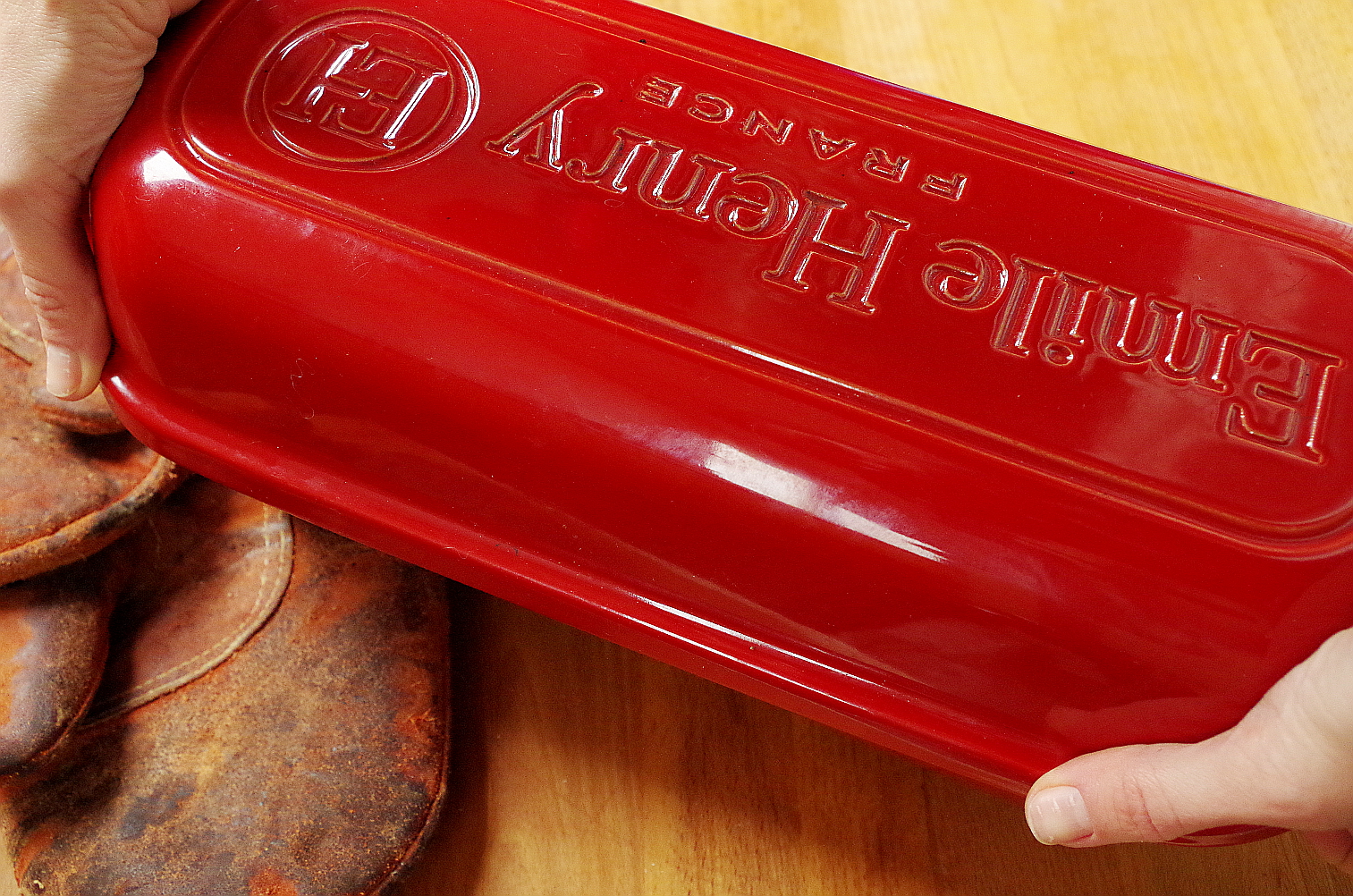 Это овальная жаропрочная глазуроанная керамическая форма, в которой можно испечь хлеб длиной около 30 см. и в ширину около 10 см., Выполнена она из такого же материала, что и круглый колпак Emile Henry, которым я регулярно пользуюсь уже несколько лет, но эта форма овальная – для овального хлеба.