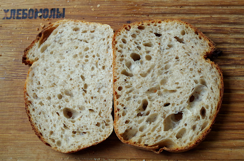 А вот уже готовый хлеб, тоже разница хоршо заметна. Это тот, который в холодном колпаке был: