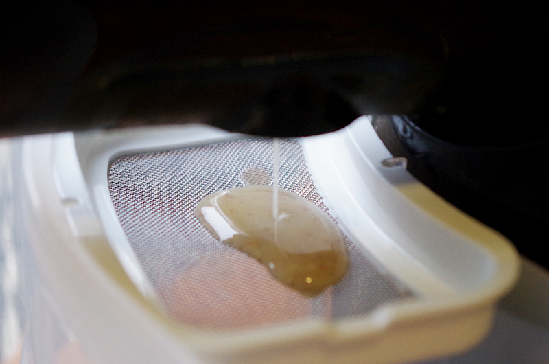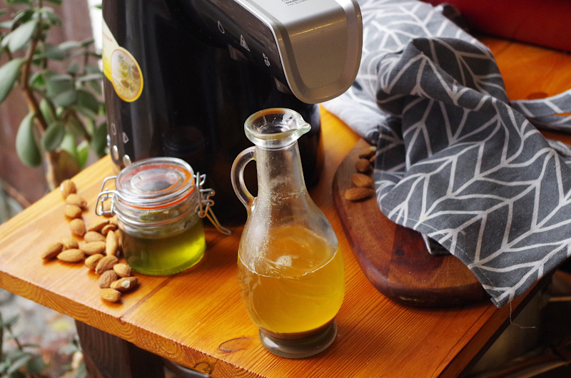 Масло, обратите внимание, сначала получается мутноватым, но мелкая ореховая взвесь постепенно оседает. В салаты или каши такое очень даже вкусно, а вот для косметических целей лучше процеживать, даже, когда жмых практически весь ушел в осадок.