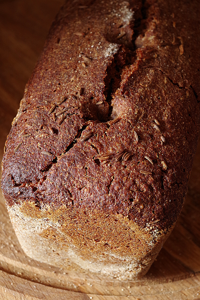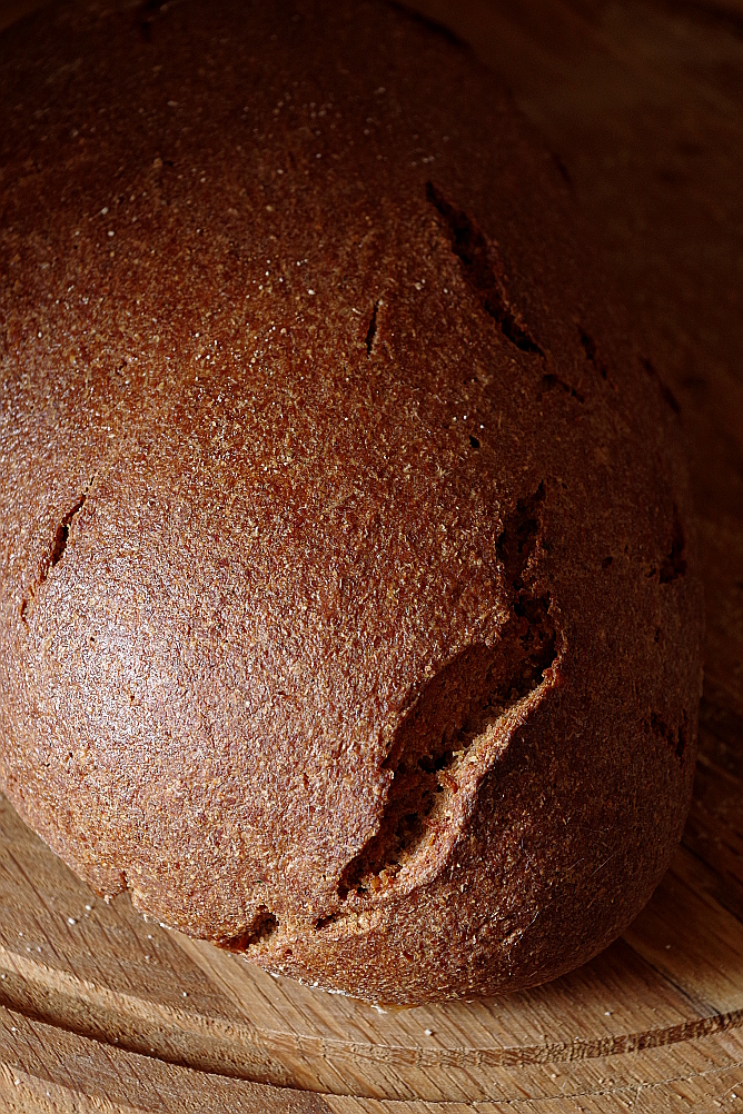 Кроме того, что плохая разрыхленность мякиша может быть из-за недостаточно кислой закваски, есть одна очень простая причина, по которой мякиш у ржаного хлеба получается плотным, а за одно твердым и грубым — это слишком густое тесто. Если вы заменяете в рецепте обдирную муку цельнозерновой или используете домашнюю жерновую, смолотую на собственной мельнице, тесто получится гуще, чем нужно, имейте это в виду. Жерновая цельнозерновая мука более влагоемкая, чем цельнозерновая, полученная вальцевым помолом.