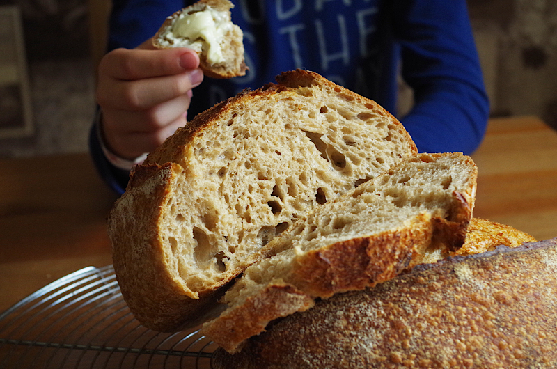 Спасибо большое за чудесный рецепт (я рецепт из ФБ пекла, похож). Я делала уже два раза, оба раза получилось отлично. Использовала разную муку, результат разный. Месила вручную. Добавляла мизерное количество сухих дрожжей (были в доме). Складывала при брожении 3-4 раза (в фейсбучном рецепте этого не было, поэтому я делала на свое усмотрение, мне показалось, что нужно складывать). Расстаивала и пекла в алюминиевых хлебных формах.