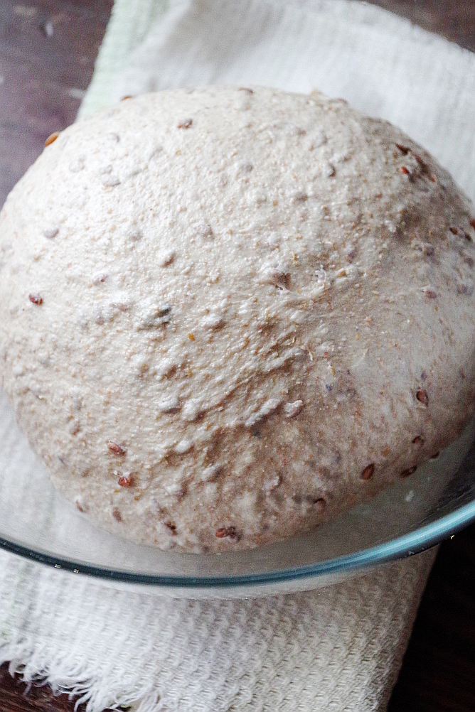После замеса свернула тесто шариком, положила в смазанный растительным маслом салатник и оставила бродить в расстоечном шкафчике Brod&Taylor при температуре 26 градусов. Время брожения 2 часа.