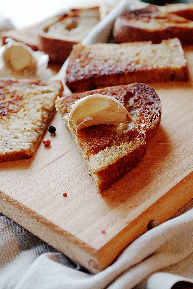 (на фото справа подсушенные в духовке кусочки этого хлеба)