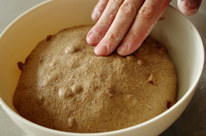 ** Если у вас есть домашние фруктовые дрожжи, такие, как тут, вы можете добавить в тесто, заменив грамм 50-70 воды, чтобы немного ускорить брожение. А еще эти дикие дрожжи еще лучше раскрывают аромта этого хлеба!