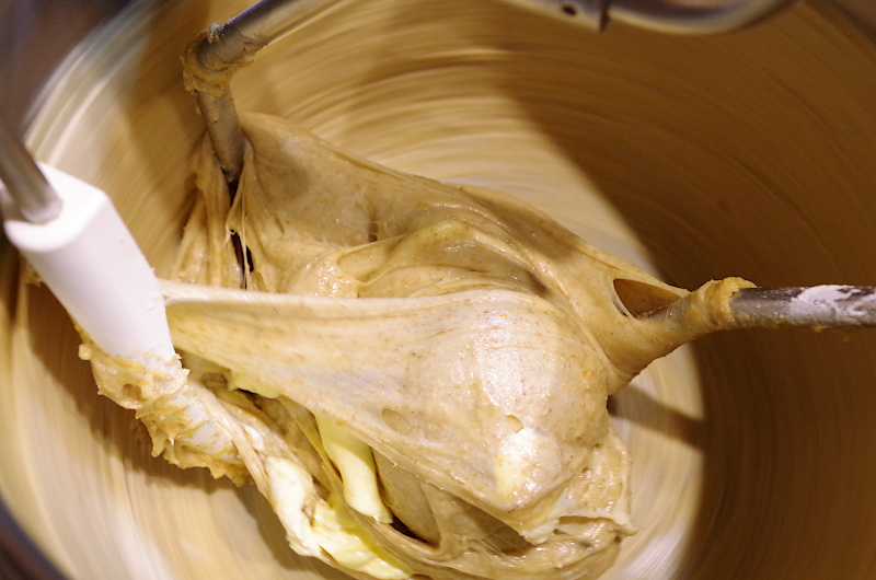 - Вносите в 3-5 этапов, каждый раз давая маслу хорошо разойтись в тесте.