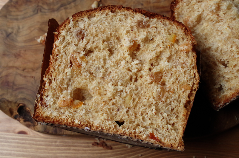 Совершенно прекрасный панеттоне на закваске, который, как положено, тянется волокнами, имеет воздушную насыщенную структуру и доооолго-долго остается мягким. Конечно, как и с любой хорошей сдобой на закваске, с ним придется повозиться, как минимум, правильно замесить и запастись терпением - такие изделия очень долго бродят. Но потом вы будете вознаграждены божественным вкусом, ароматом и мягкостью.