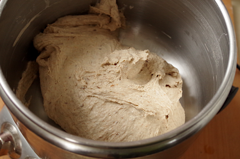 У Хамельмана в этом рецепте используется и ржаная закваска и жидкая пшеничная закваска, плюс в тесто он добавляет дрожжи. Я убрала промышленные дрожжи, а вместо пшеничной закваски поставила опару на домашних фруктовых дрожжах. Для вас это еще один вариант использования этой культуры в комбинации с закваской.