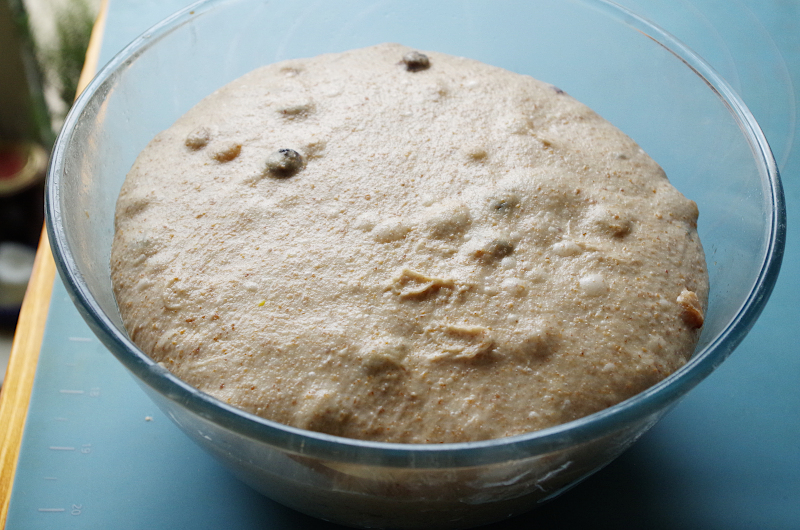 Или поставьте в холодильника (6-8°) на 12-16 часов, тесто там успеет немного подойти, но полностью может не созреть. Вы можете оставить его на больший срок или достать и согреть. В любом случае, пожалуйста, кроме временных рамок рецепта, ориентируйтесь на состояние теста: оно должно стать пышным и пористым, используйте для брожения прозрачные миски и контейнеры, чтобы иметь возможность видеть разрыхление теста.