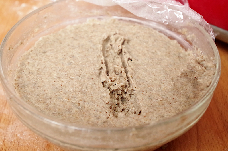 Если месите вручную, то сначала смешайте заварку и закваску, добавьте воду, соль и мед, размешайте все, а потом добавляйте муку.