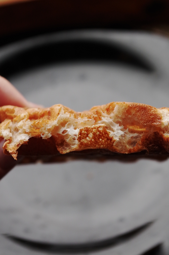 Собственно, теперь хотелось бы рассказать и показать чудесные вафли, которые получаются на остатках закваски. За основу я брала рецепты-бестселлеры Люды Мariana-aga и Миши Crucide . Надо заметить, что, представления о «правильном» вафельном тесте у всех разные, потому что и предпочтения разные. Как по мне, идеальные вафли – это снаружи хрустящие, даже ломкие и мягкие внутри, при этом они просто обязаны быть воздушными и пористыми, чтоб на просвет был виден «ажур».