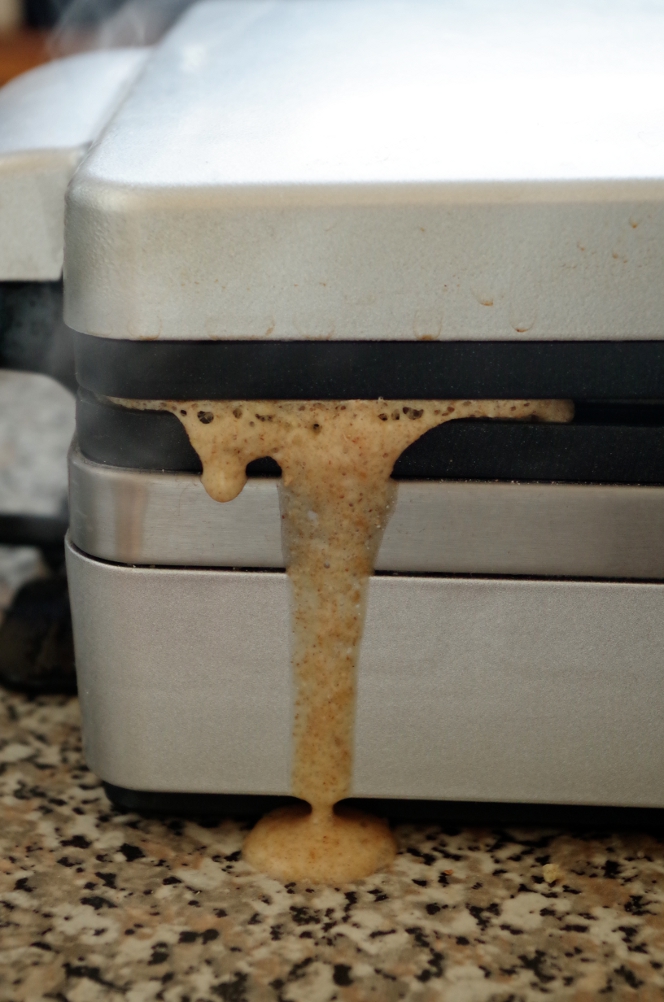 Так вот, вернусь к консистенции теста. Ели в точности следовать рецептам Люды и Миши, тесто получается жидким, из него у меня получаются те самые «привередливые» вафли, поэтому я подстраиваю консистенцию теста под свои представления об идеальных вафлях. Самые мои любимые и вкусные – цельнозерновые на ржаной или пшеничной закваске, не очень сладкие, хрустящие снаружи и воздушные-мягкие внутри. Цельнозерновая мука, кроме несомненной пользы, добавляем вафлям и вкуса, и хрусткости, поэтому она просто незаменима!